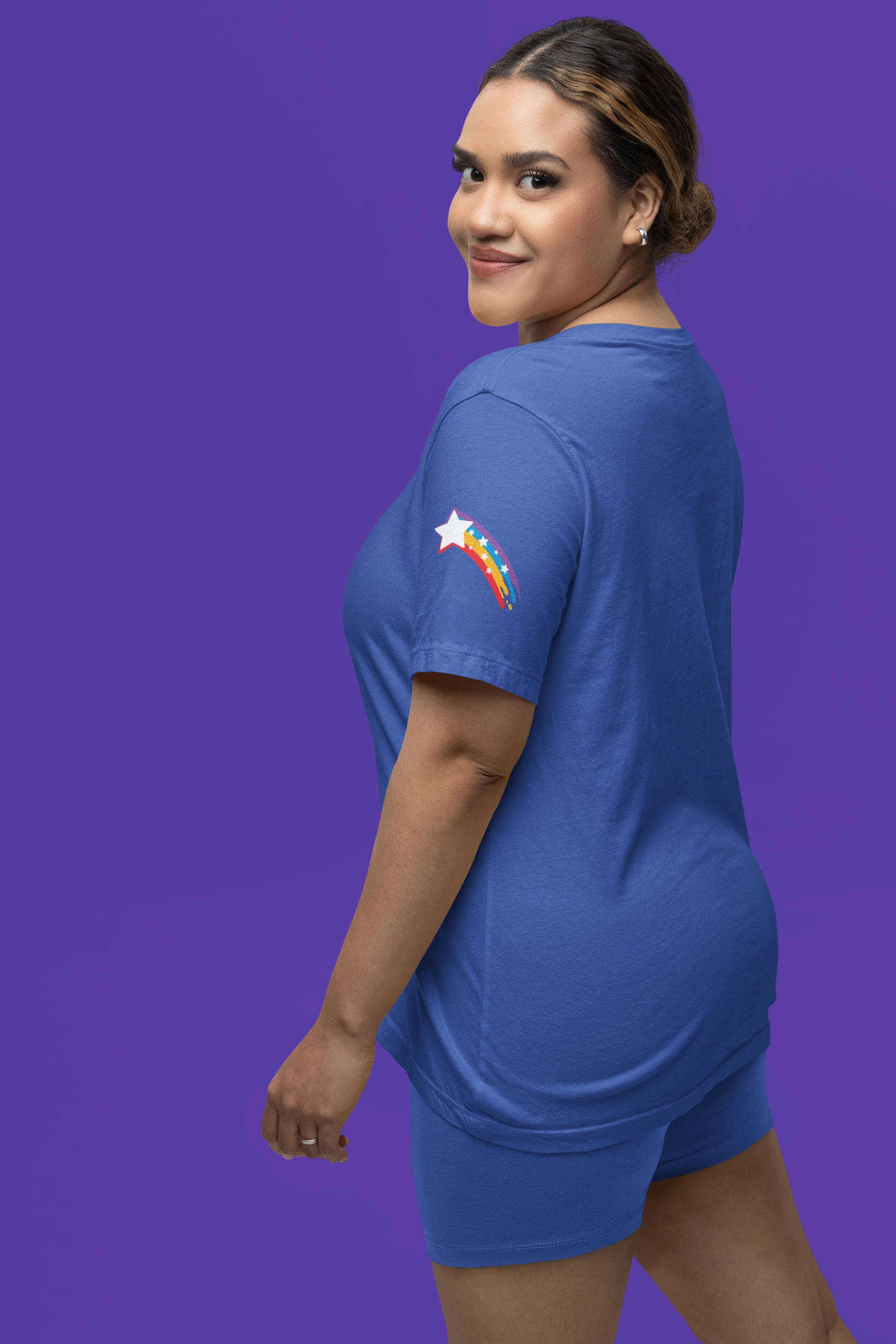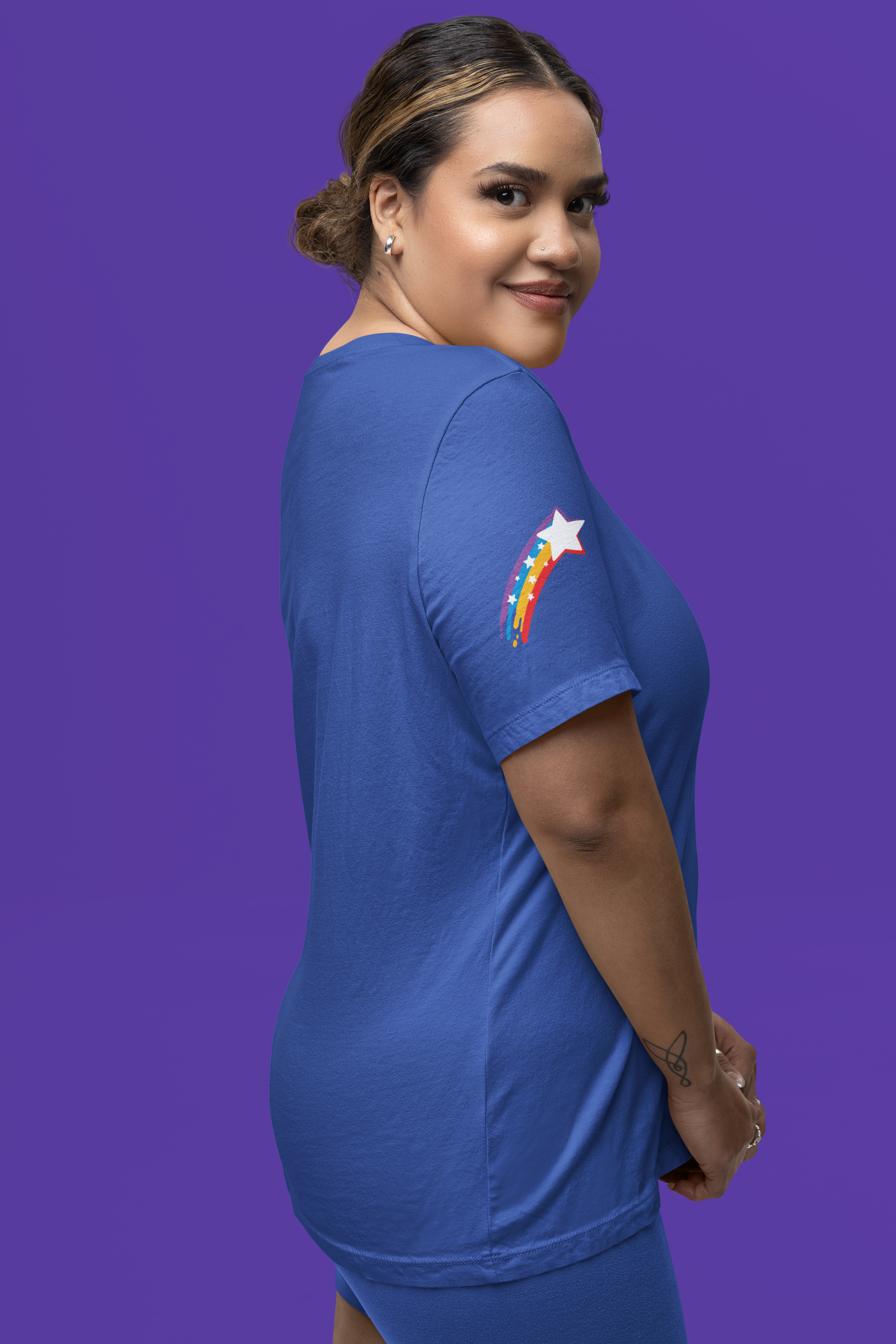 Perfect for encouragement gifts, mental health support, graduation presents, new beginnings, or everyday wear for optimists and hope-seekers. Features matching shooting star rainbow sleeve accents. The unisex fit is designed for all body types. A meaningful gift for friends facing challenges, positive thinkers, and anyone who needs reminded to look for the light.